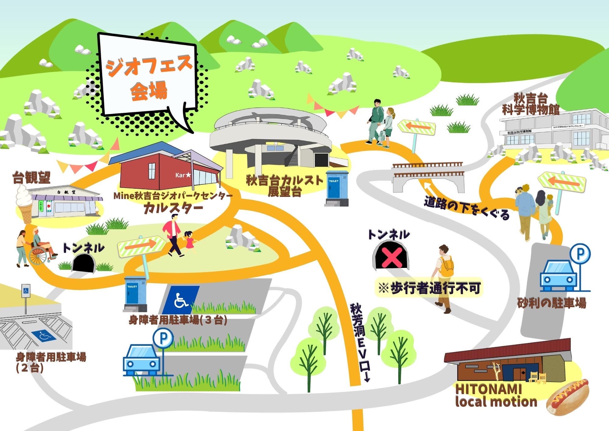年に1度の祭典「ジオフェス」で、今年は秋祭りを実施します。神楽や太鼓の演出が行われるほか、ヨーヨーつりやスーパーボールすくい、輪投げ、トゥクトゥクによる無料送迎付きの秋吉台ツアーなど普段はできない特別な体験をお楽しみいただけます。
