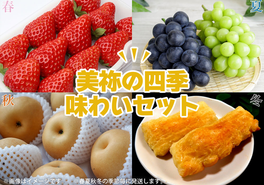 一年を通して季節ごとに美祢の味覚が届く「美祢の四季味わいセット」をはじめ、地ビールや美祢グランドホテルの宿泊割引券(ペア宿泊券相当)など、美祢の魅力が詰まった景品をご用意しています!